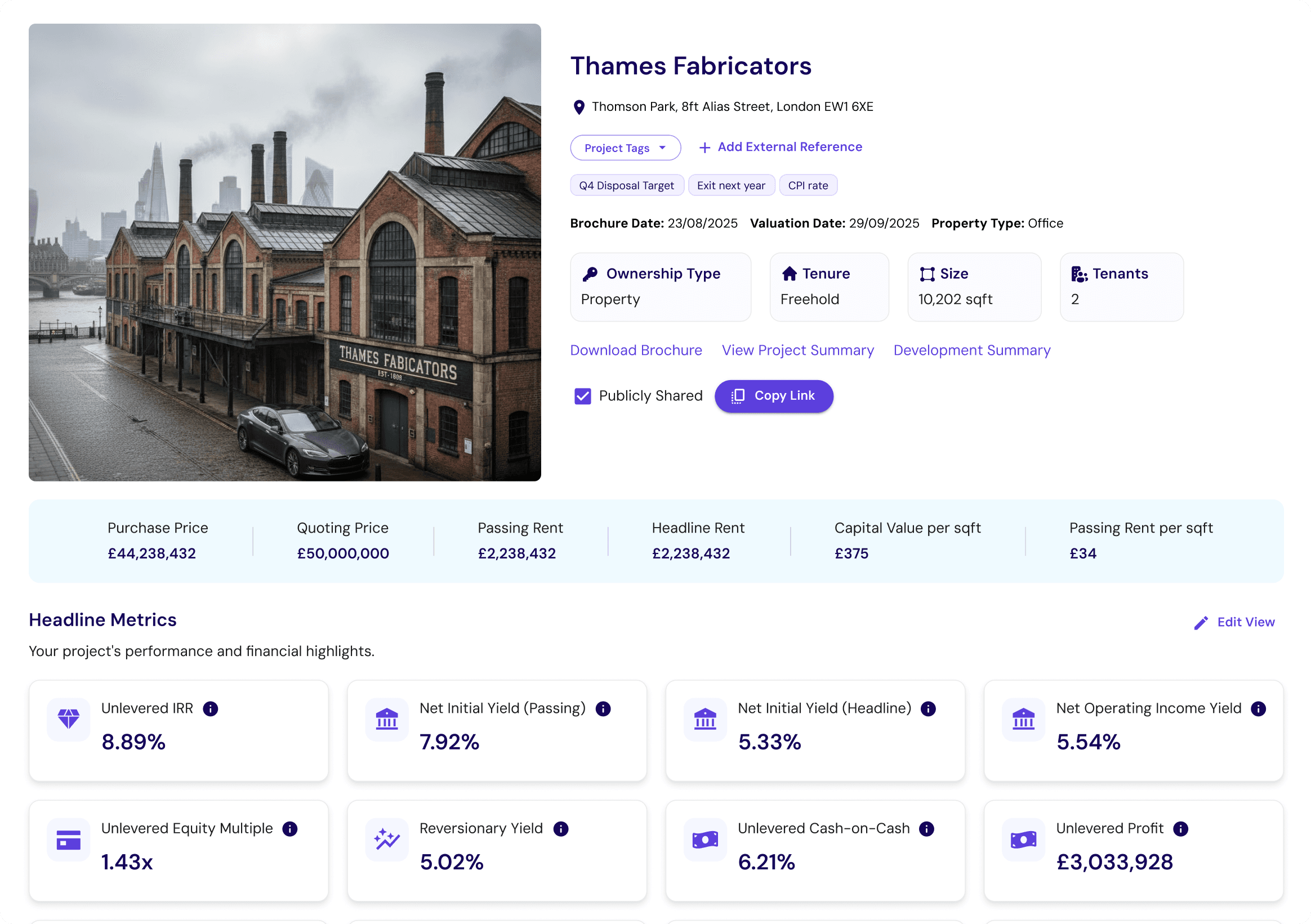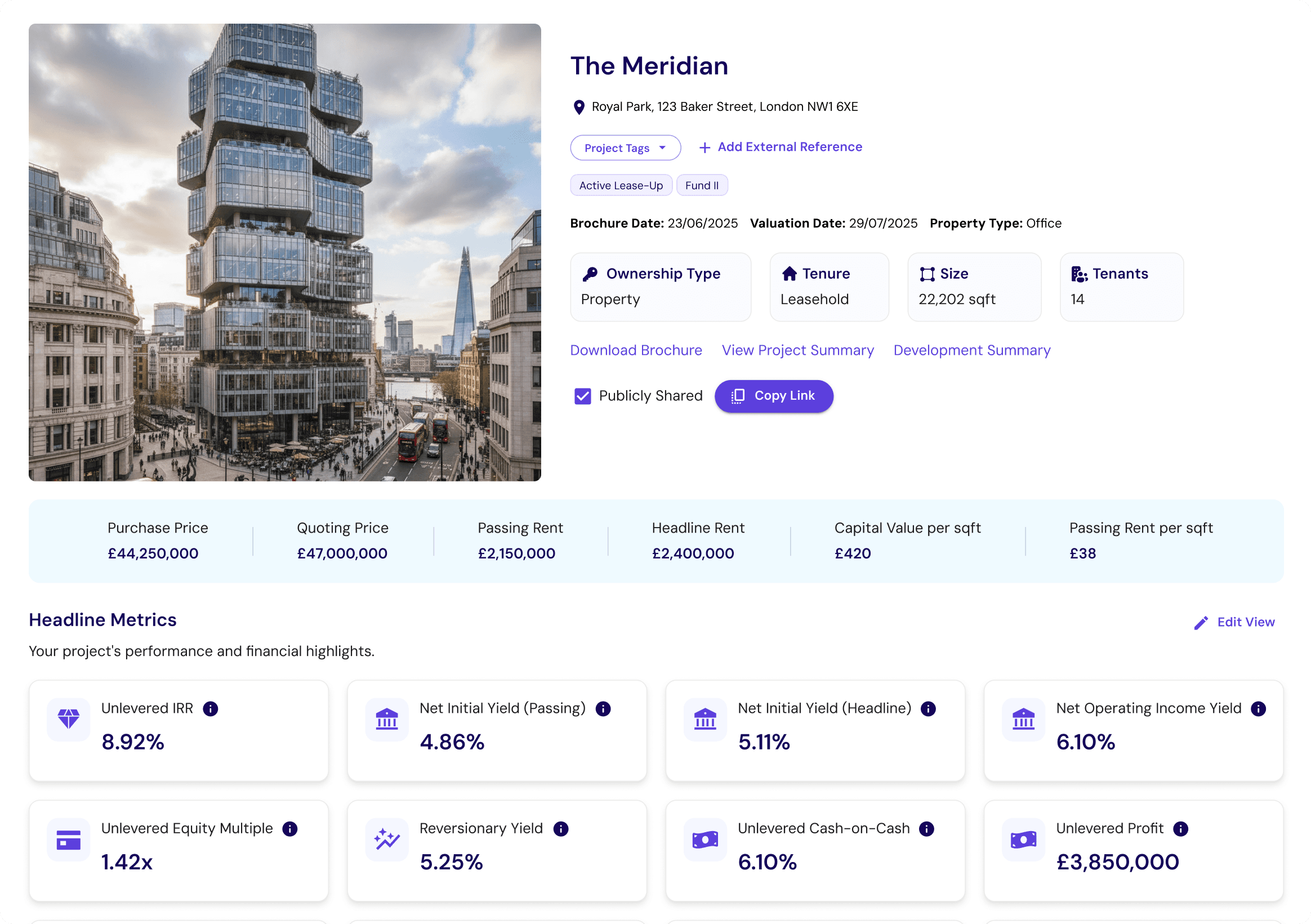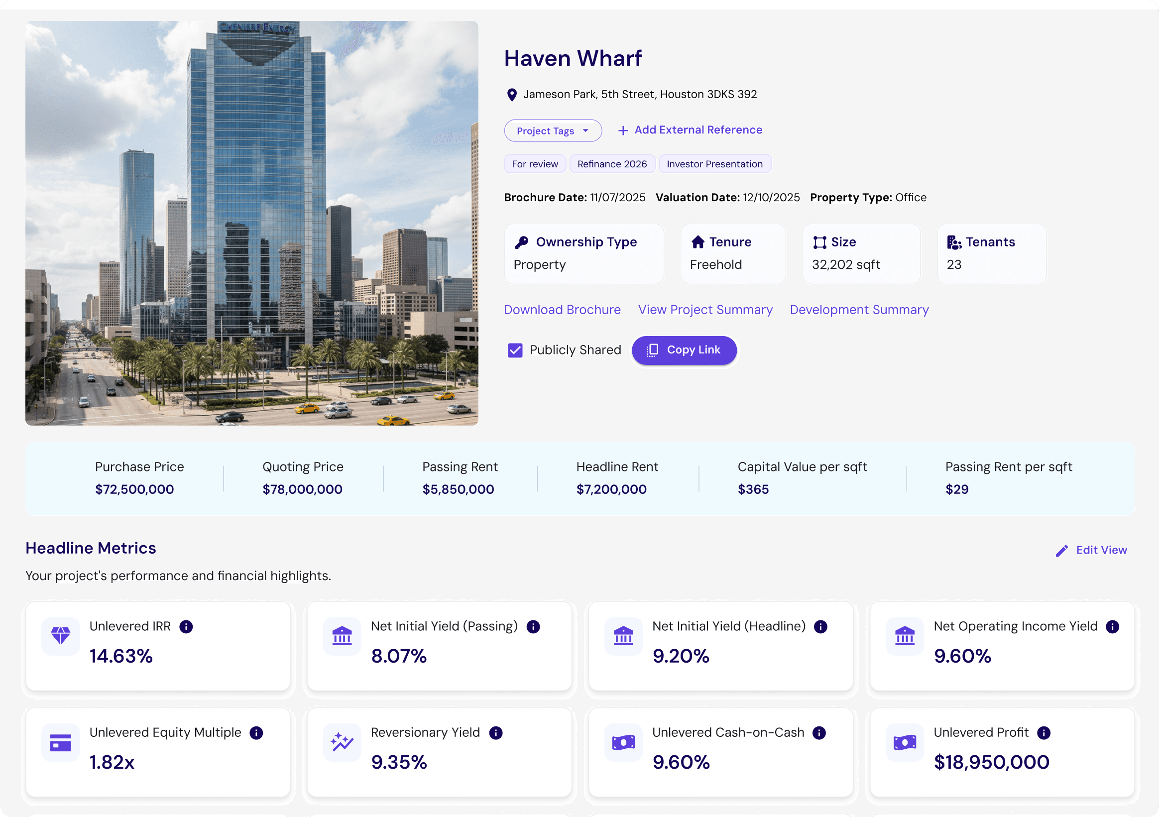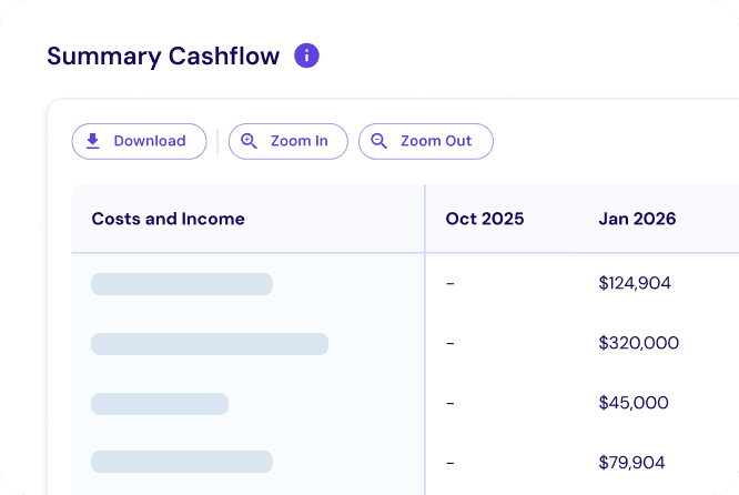 Generate full cashflow models in minutes, run unlimited scenarios, adjust assumptions instantly and stress test outcomes in real time.